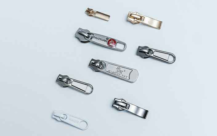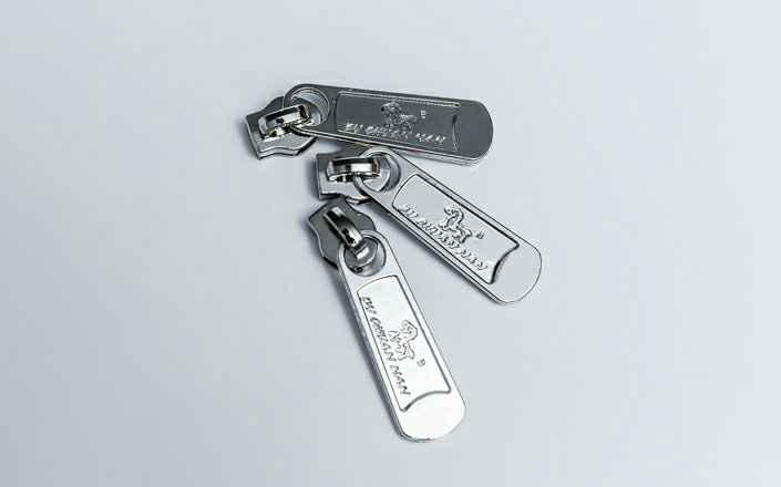在服装款式设计上,不光拉链的长度、材质要考虑,拉链头也是很要的设计元素。金属头、皮革头、花式头等,有些品牌包袋或品牌服装门刻有品牌LOGO…